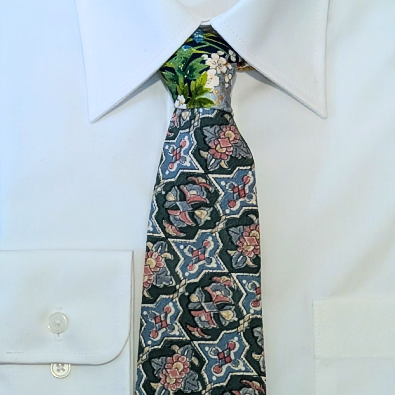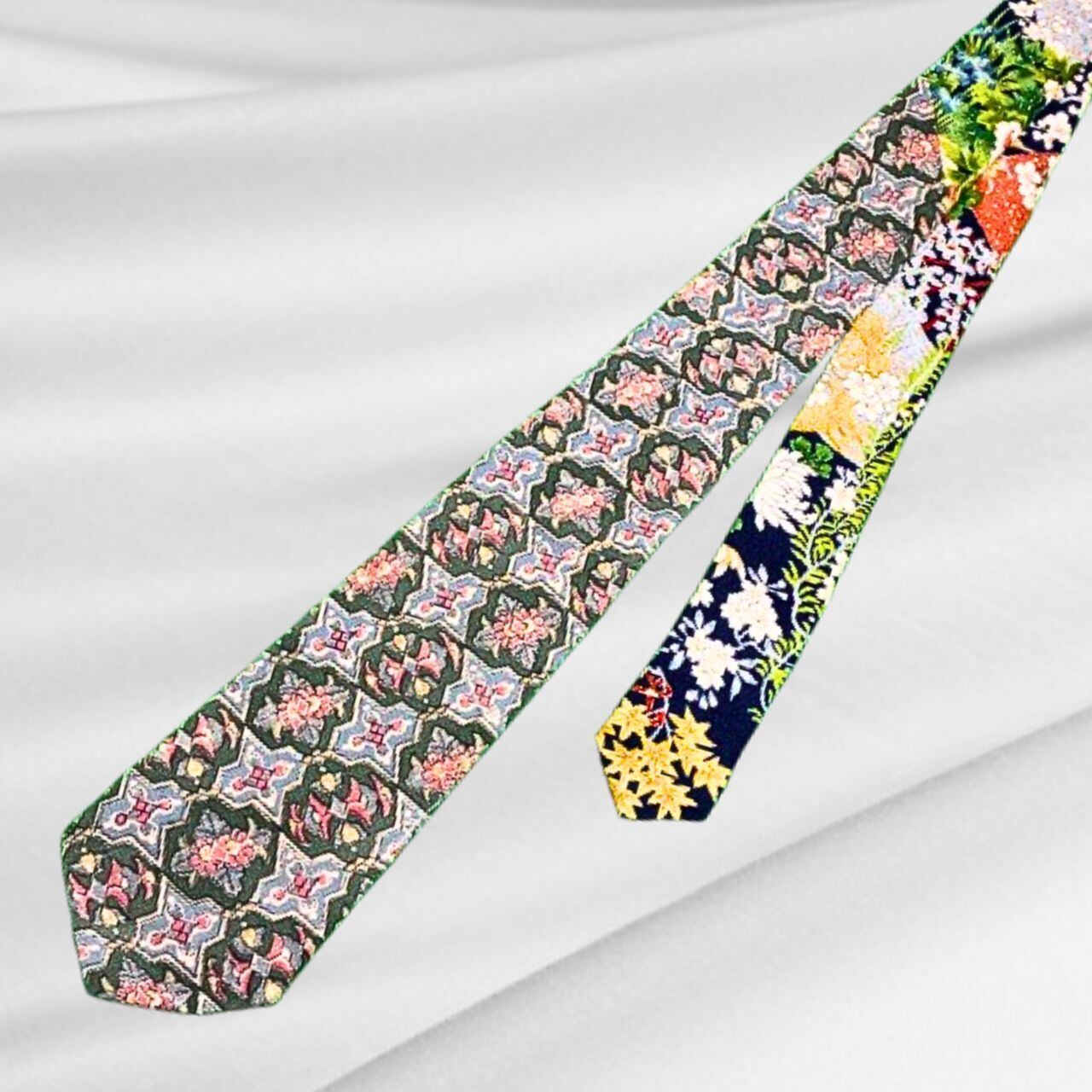 2つの異なる着物地が織りなす、Cảm ơnだけの一点ものネクタイです。