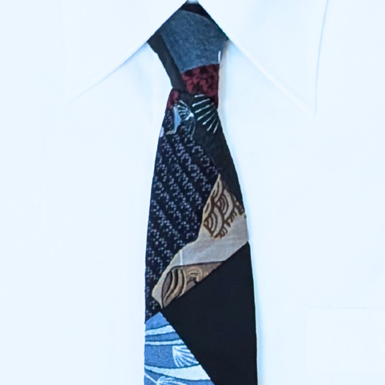和の気配をひと結びに重ね、装いに物語を添えるパッチワーク仕立てです。