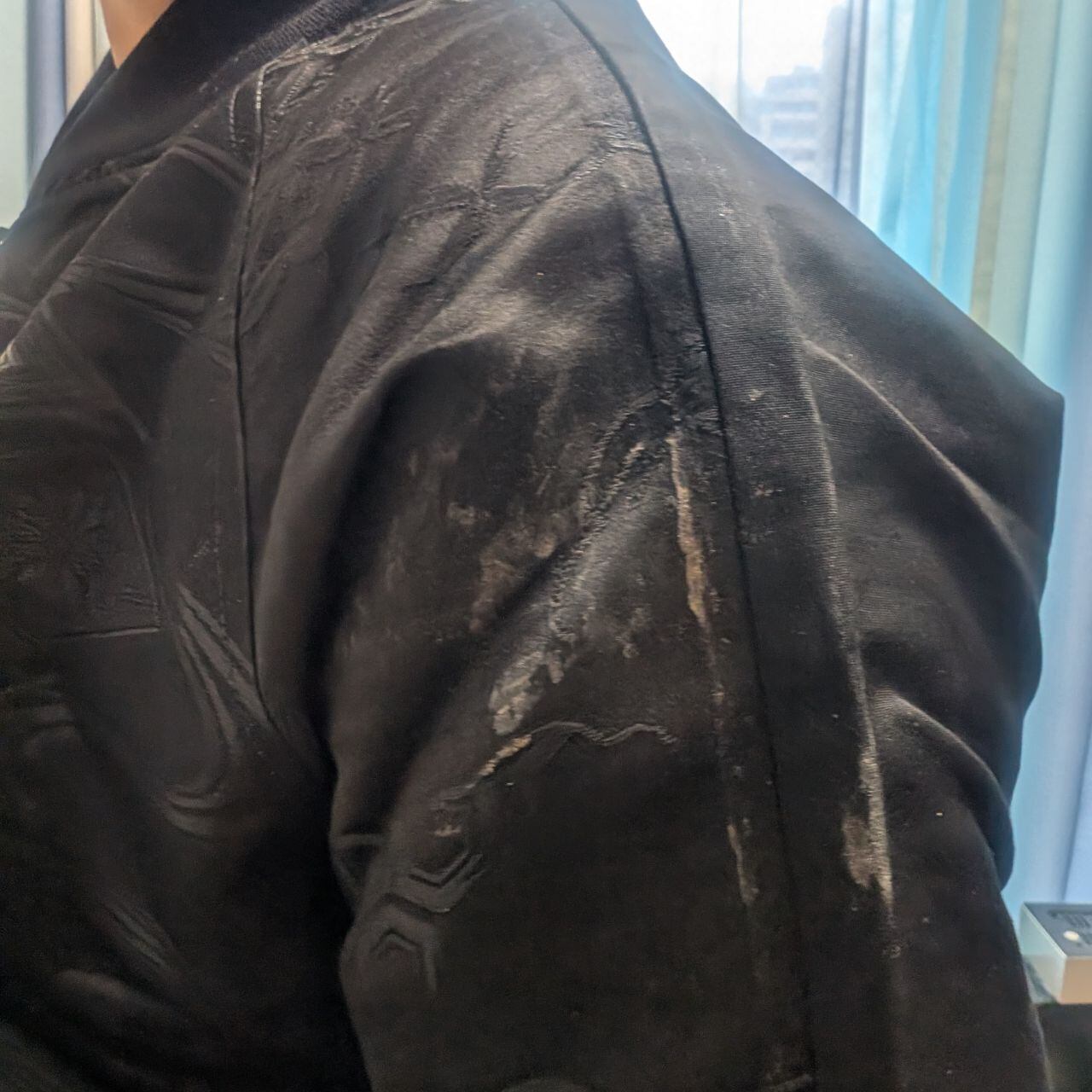 ※ ごく小さなシミ・色褪せがある個所が両腕の二の腕部分にございます(写真7、8枚目枚目参照)。